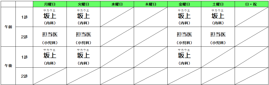 小児科診療日:月・火・金・土曜日(午前中のみ)